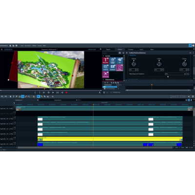 In diesem Kapitel erhalten Sie zahlreiche kreative Anregungen in Form von fertigen MAGIX-Projekten, die Sie direkt verwenden können plus zusätzliche Tutorials mit Erklärungen zur individuellen Nutzung und weiteren Optimierung. Die Projekte sind schnell, individuell und effektiv einsetzbar und mit eigenem Content auffüllbar. Zusätzlich erhalten Sie weitere interessante Optimierungstipps und Anregungen. Verleihen Sie Ihren Projekten einen besonderen Look mit unseren vielseitigen Convenience Projects. Erstellen Sie beeindruckende Lageplan-Animationen auf einer Rolle, inklusive realistischem Ein- und Ausrollen, oder nutzen Sie ein selbstgebautes Videokreuz als Übergang mit abgerundeten Ecken, Animation und Titel. Entdecken Sie außerdem eine gespiegelte 45°-Videowand mit mehreren Kacheln und Titelelement – ergänzt durch hilfreiche Tipps & Tricks für die Umsetzung. Weitere Highlights sind verschiedene dynamische Videowand-Layouts sowie ein kreativer, selbstgebauter nostalgischer Viewmaster-Effekt. Abgerundet wird das Ganze durch zusätzliche Praxis-Tipps, unter anderem zum Ton mischen und zur optimalen Gestaltung Ihrer Projekte.